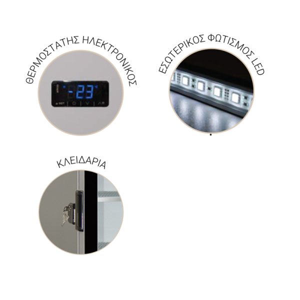 ΕΣΩΤΕΡΙΚΟΣ ΦΩΤΙΣΜΟΣ, ΕΥΡΟΣ ΕΣΩΤΕΡΙΚΗΣ ΘΕΡΜΟΚΡΑΣΙΑΣ -22°C ΕΩΣ -18°C, ΚΛΙΜΑΤΙΚΗ ΚΛΑΣΗ 3 (+10°C ΕΩΣ +25°C MAX 60% ΥΓΡΑΣΙΑ), ΛΕΙΤΟΥΡΓΙΑ ΣΥΝΤΗΡΗΣΗΣ, ΣΤΑΤΙΚΟΣ, ΣΥΡΟΜΕΝΗ ΠΟΡΤΑ, ΨΗΦΙΑΚΟΣ ΘΕΡΜΟΣΤΑΤΗΣ |