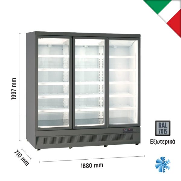 KLIMAITALIA MR 188 TN3 GREY ΤΡΙΠΛΗ ΒΙΤΡΙΝΑ ΨΥΓΕΙΟ ΜΕ ΑΝΟΙΓΟΜΕΝΕΣ ΠΟΡΤΕΣ 1345ΛΤ ΚΑΘΑΡΗ ΧΩΡΗΤΙΚΟΤΗΤΑ
