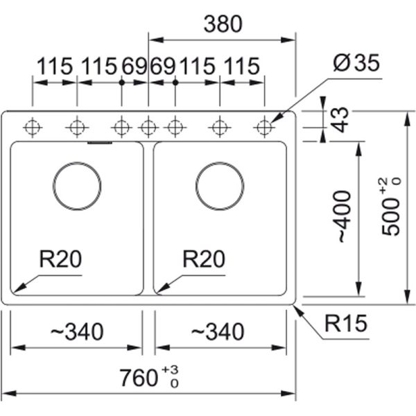 FRANKE SQUARE BXX 210-80 (127.0649.617) NΕΡΟΧΥΤΗΣ ΙΝΟΧ ΓΙΑ ΝΤΟΥΛΑΠΙ 90CM ΔΙΑΣΤΑΣΗ BOWL 800*410*200MM