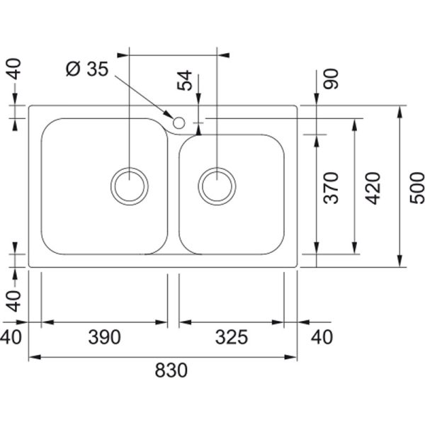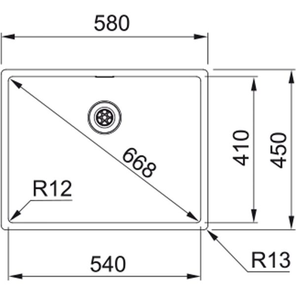 FRANKE SQUARE BXX 210-54 (127.0649.721) NΕΡΟΧΥΤΗΣ ΙΝΟΧ ΓΙΑ ΝΤΟΥΛΑΠΙ 60CM ΔΙΑΣΤΑΣΗ BOWL 540*410*200