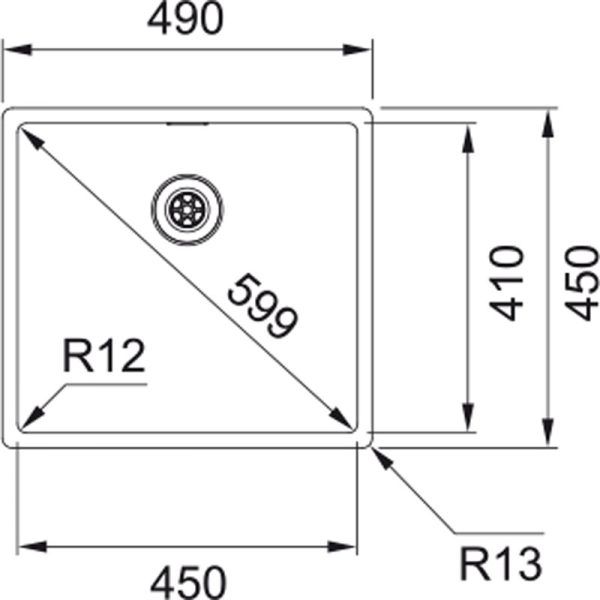 FRANKE SQUARE BXX 210-45 (127.0649.722) NΕΡΟΧΥΤΗΣ ΙΝΟΧ ΓΙΑ ΝΤΟΥΛΑΠΙ 50CM ΔΙΑΣΤΑΣΗ BOWL 450*410*200