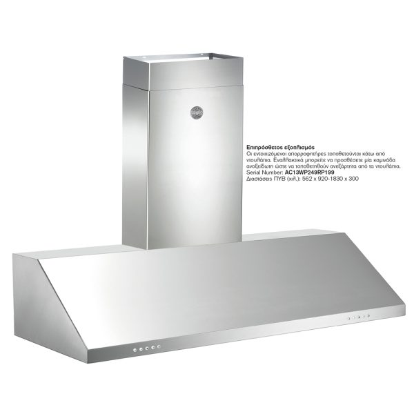BERTAZZONI KU120PRO2XA+ΚΑΜΙΝΑΔΑ 901263 ΑΠΟΡΡΟΦΗΤΗΡΑΣ ΤΖΑΚΙ 120CM 2 ΜΟΤΕΡ ΜΕ ΑΝΕΞΑΡΤΗΤΟ ΧΕΙΡΙΣΜΟ ΦΙΛΤΡΑ ΤΥΠΟΥ BAFFLE 1600m3/h