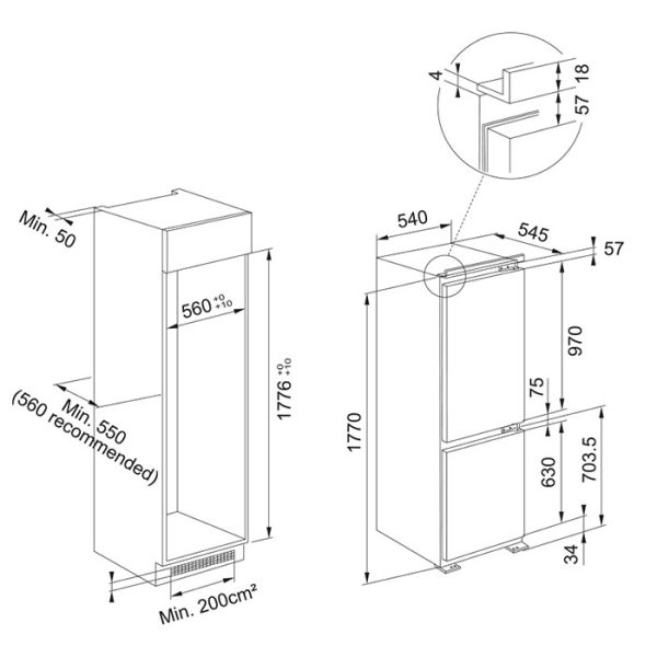 FRANKE FCB 400 TNF NE E (118.0705.155) ΕΝΤΟΙΧΙΖΟΜΕΝΟΣ ΨΥΓΕΙΟΚΑΤΑΨΥΚΤΗΣ NO FROST ΠΛΑΤΟΣ 70CM
