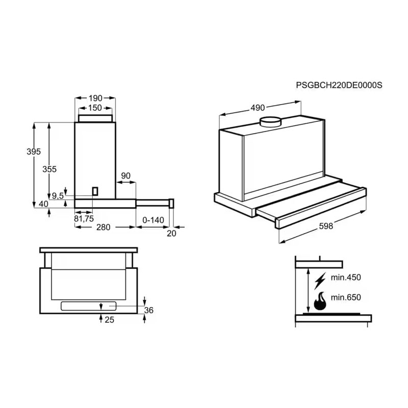 Τύπος εγκατάστασης: Συρόμενος απορροφητήρας, πλάτος 60 cm