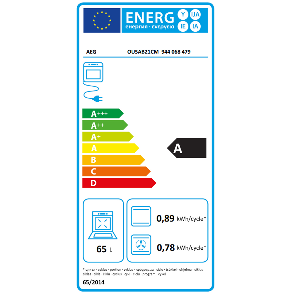 Ενεργειακή κατανάλωση σε πρότυπο φορτίο, λειτουργία θερμού αέρα (kWh/κύκλο) Πάνω φούρνος: 0.78