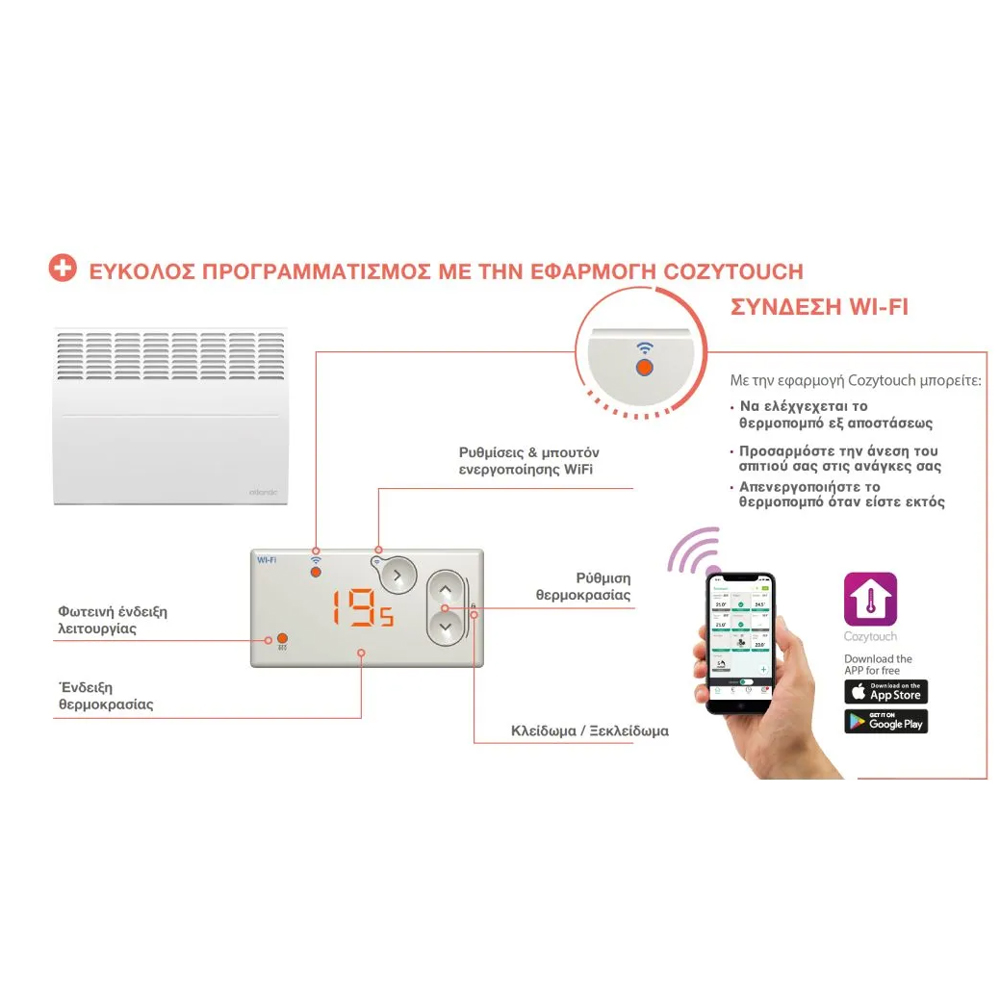 Δυνατότητα σύνδεσης με το Wi-Fi και απομακρυσμένος έλεγχος από οπουδήποτε μέσω της εφαρμογής Cozytouch