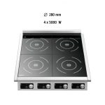 Διαθέτοντας 4 μεγάλες εστίες για διάμετρο κατσαρόλας έως 280 mm και δυνατότητα αλλαγής ανάμεσα σε βαθμίδες ισχύος και θερμοκρασία αποτελεί έναν αξιόπιστο βοηθό στην κουζίνα με συνολική ισχύ 20 kW.
