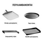 Συμπεριλαμβάνονται : 1 καλάθι μαγειρέματος 280x210mm , 1 έλασμα εκτροπής αέρα 280x305mm , 1 ταψί πίτσας.