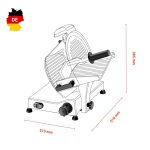 Ο εξοπλισμός της βελτιστοποιημένης μηχανής κοπής με λεπίδα 250 mm θα σας πείσει λόγω των τεχνικών χαρακτηριστικών από πολλές απόψεις. Αυτή η ισχυρή ζαμπονομηχανή πλάγιας κοπής διαθέτει βάση συγκράτησης των υπολειμμάτων, ακονιστήρι λεπίδων, οδηγό κοπής και, για εγγύηση της ασφάλειας, διπλή προστασία λεπίδων και μαγνητικό διακόπτη.