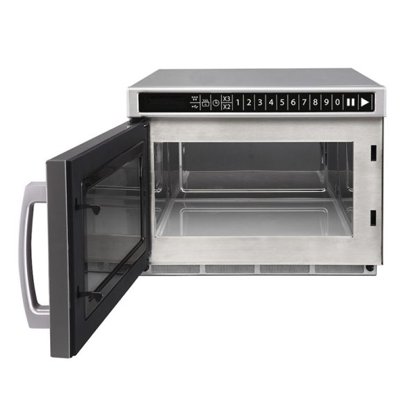 Στοιβαζόμενος φούρνος μικροκυμάτων με 1800 Watt, 2 λυχνίες magnetron, χρονομετρητή και 30 ρυθμιζόμενα προγράμματα.