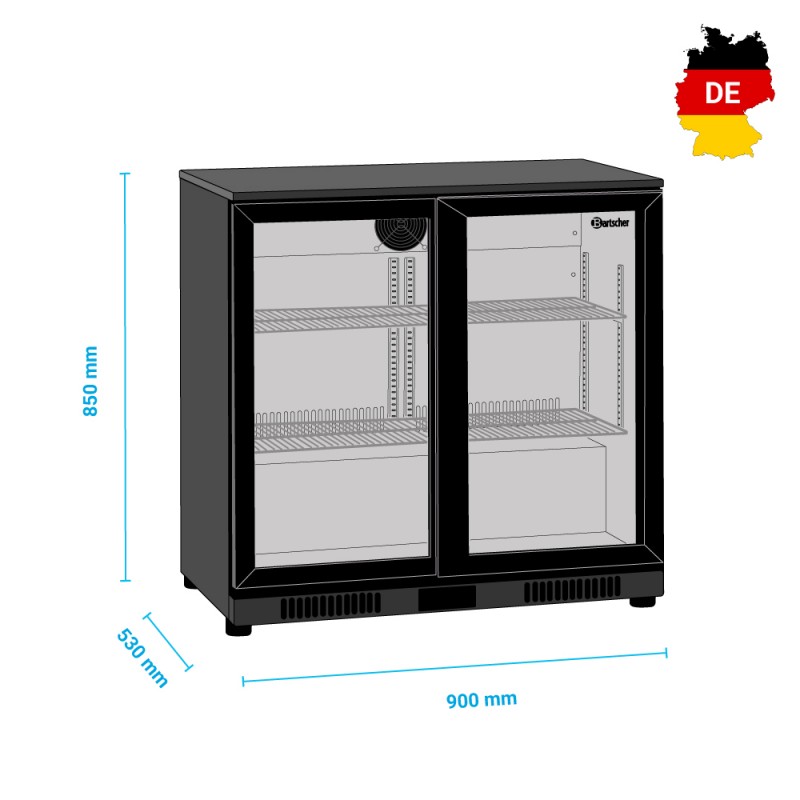 Το διπλό Back Bar της Bartscher , με χωρητικότητα 176 λίτρα και ισχύ 175Watt , ψύχει τα ποτά και τα αναψυκτικά σας με αξιοπιστία. Διαθέτει ηλεκτρονικό θερμόμετρο αλλά και θερμοστάτη δίνοντας έτσι την δυνατότητα για ακριβή ρύθμιση της επιθυμητής θερμοκρασίας. Οι δυο συρόμενες πόρτες του διαθέτουν διπλό τζάμι και κλειδαριά ενώ ο εσωτερικός φωτισμός του βοηθά στην καλύτερη δυνατή παρουσίαση των προϊόντων προς τον καταναλωτή.