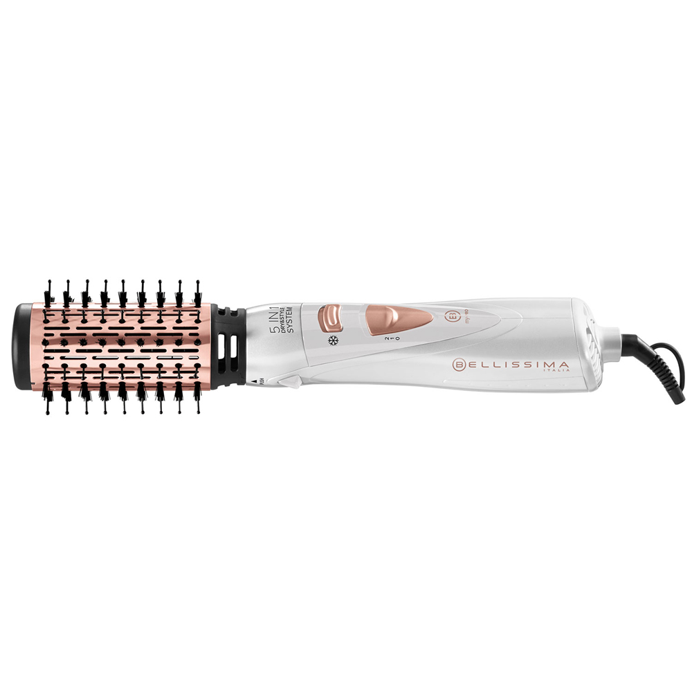 Ίσια μαλακά μαλλιά με όγκο, κυματιστά με διαμορφωμένες άκρες ή πυκνό κατσαρό; Ελευθέρωσε τη δημιουργικότητά σου στο styling με τη Bellissima GH18 1100 5 σε 1, τη βούρτσα με αέρα για φορμάρισμα η οποία χάρη στα 5 εξαρτήματα σου επιτρέπει να ικανοποιήσεις τις ανάγκες σου ως προς το look.