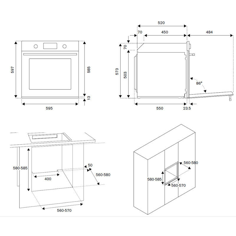 Διαστάσεις εντοιχισμού (ΠxYxB) 56,0-57,0 x 58,0-58,5 x 56,0-58,0 εκ.