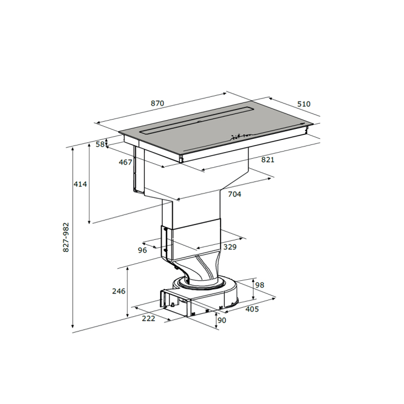 Διαστάσεις κοπής πάγκου (ΠxΒ) 825 x 480 χιλ. και ελάχιστο κενό ύψους 70 χιλ. κάτω από την εστία