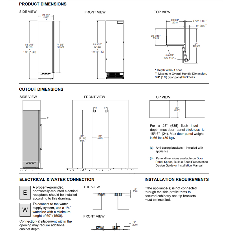 Διαστάσεις συσκευής (ΥxΠxΒ) - Βάθος με ανοιχτή πόρτα 212,3 x 60,3 x 59,2 - 129,5εκ.