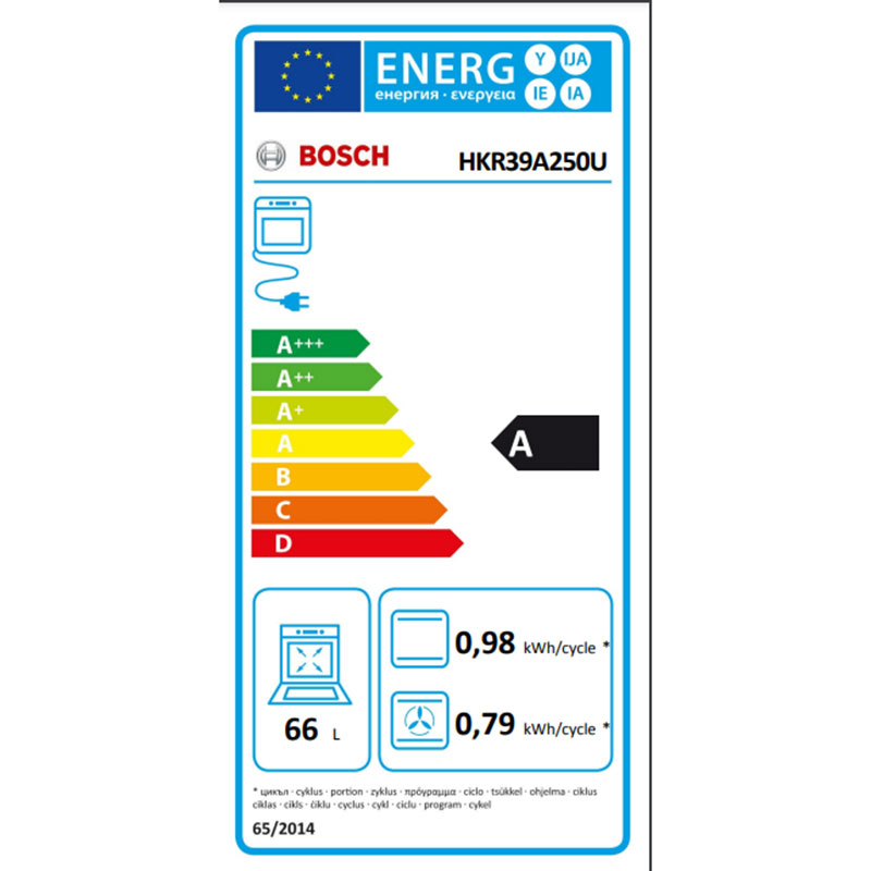 Ενεργειακή κλάση (ΕΕ 65/2014): A σε μια κλίμακα ενεργειακών κλάσεων από Α+++ έως D