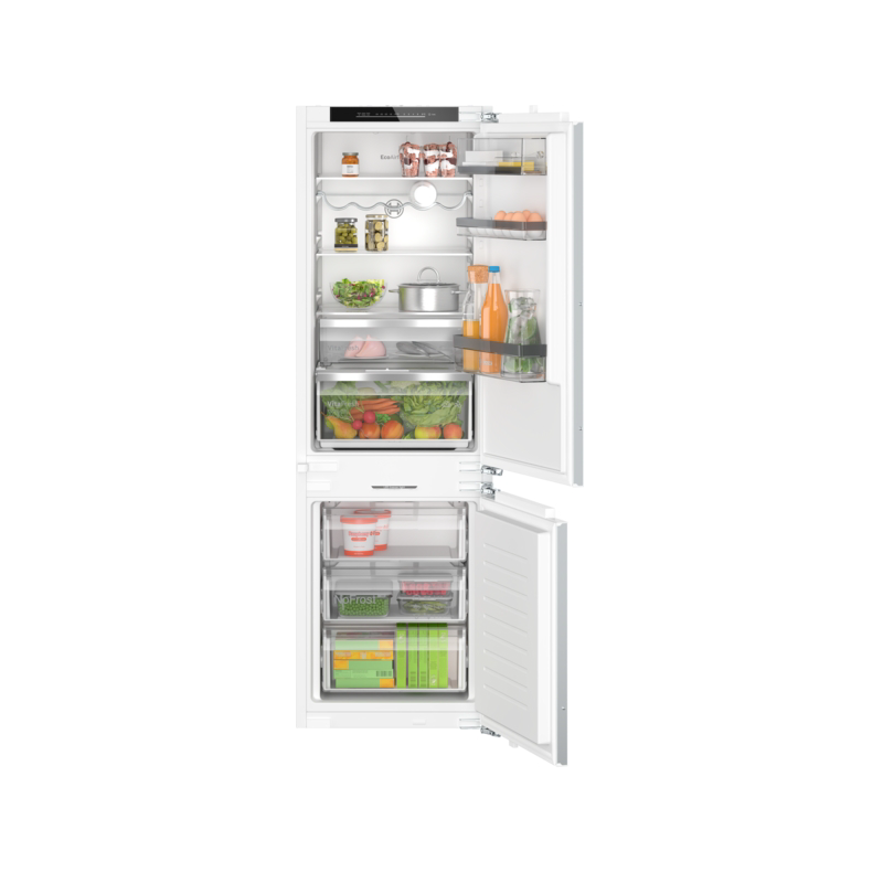 Ο ευρύχωρος εντοιχιζόμενος ψυγειοκαταψύκτης με VitaFresh XXL <0°>, No Frost και σταθερό επίπεδο θερμοκρασίας διατηρεί το φαγητό σας φρέσκο για μεγαλύτερο χρονικό διάστημα. Όλα τα κατεψυγμένα προϊόντα σας χωρίς πάγο και σε τέλεια θέα χάρη στον πρόσθετο φωτισμό του χώρου κατάψυξης.