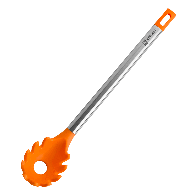 Κουτάλα ζυμαρικών EFFICIENT της Bra, κατασκευασμένη από υψηλής ποιότητας σιλικόνη, με το χαρακτηριστικό πορτοκαλί χρώμα της συλλογής.