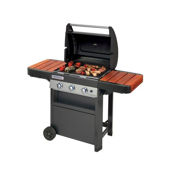 Εξοπλισμένη με πλαϊνά ξύλινα αναδιπλούμενα τραπέζια, παρέχει τον απαραίτητο βοηθητικό χώρο που χρειάζεται ένας ψήστης. Διαθέτει ισχυρούς και πλήρως ρυθμιζόμενους καυστήρες από ανοξείδωτο ατσάλι για εξαιρετικά αποτελέσματα. Η μεγάλη σχάρα από επισμαλτωμένο μαντέμι προσφέρει στους λάτρεις της μαγειρικής μεγαλύτερη ευελιξία σε γαστρονομικές επιλογές. Επιπλέον, χάρη στο InstaClean® System ο καθαρισμός της ψησταριάς είναι πλέονν εύκολος και γρήγορος.