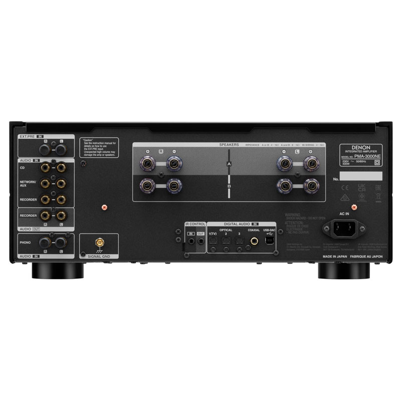 Το Denon PMA-3000NE αποδίδει 160W ανά κανάλι στα 4 ohm και 80W ανά κανάλι στα 8 ohm, οδηγώντας ακόμα και το πιο απαιτητικό ηχείο για να προσφέρει κορυφαίο ήχο σε κάθε περίπτωση. Σχεδιασμένο και κατασκευασμένο στις εγκαταστάσεις της Denon στη Shirakawa της Ιαπωνίας.