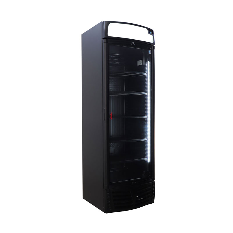 Premium all black ψυγείο αναψυκτικών με κουρμπαριστή πόρτα (& τζάμι) και εξωτερική φωτιζόμενη κουρμπαριστή μετόπη.