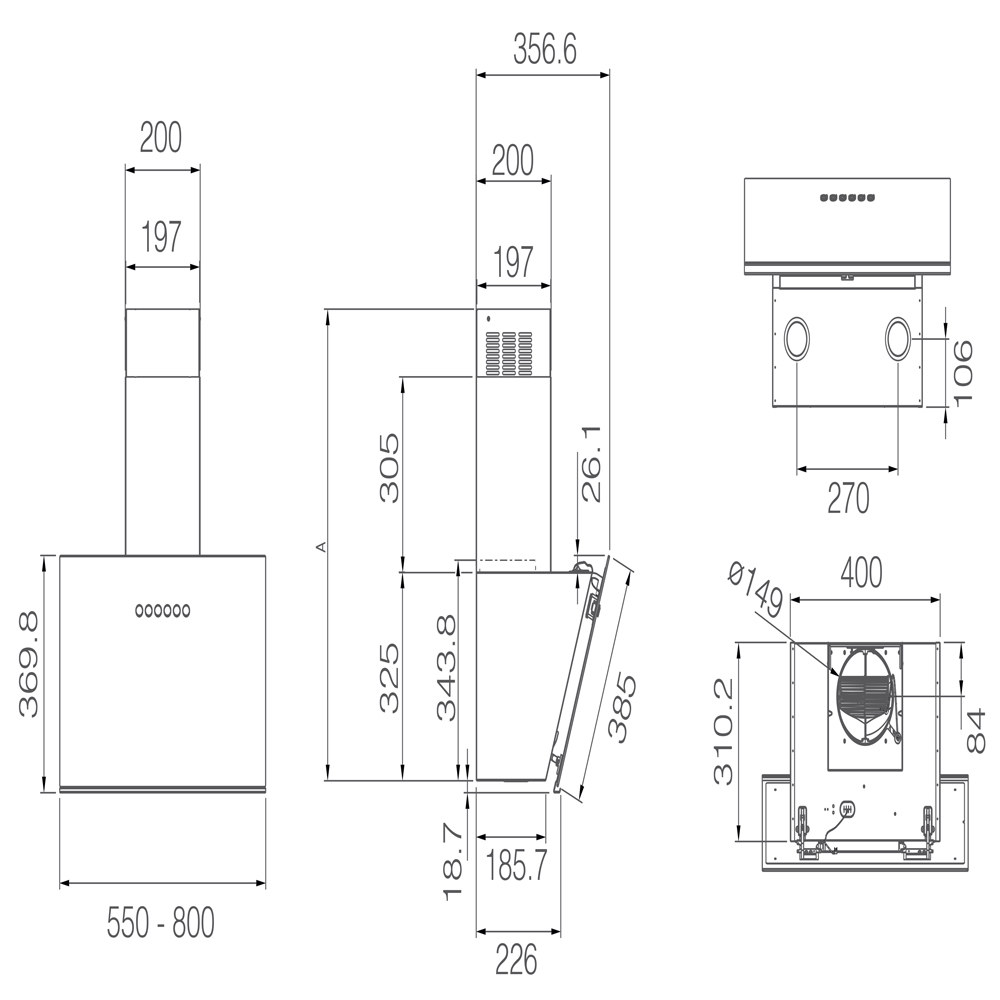 Ελάχιστη απόσταση από ντουλάπι τοίχου (επαγωγική/κεραμική εστία): 45 cm