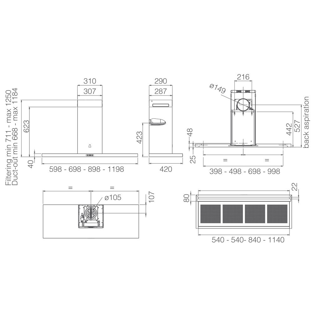Δεν υπάρχουν πλέον επιπλέον σωλήνες ή καμινάδες ορατοί στις εγκαταστάσεις τοίχου! Το αποτέλεσμα; Υψηλή απορροφητική ικανότητα και κορυφαία αισθητική.