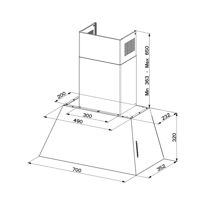 Η πίσω έξοδος αέρα επιτρέπει τη διοχέτευση των αναθυμιάσεων στο πίσω μέρος της κουκούλας, εξαλείφοντας την προέκταση της καμινάδας και εκμεταλλευόμενο τον χώρο από πάνω.