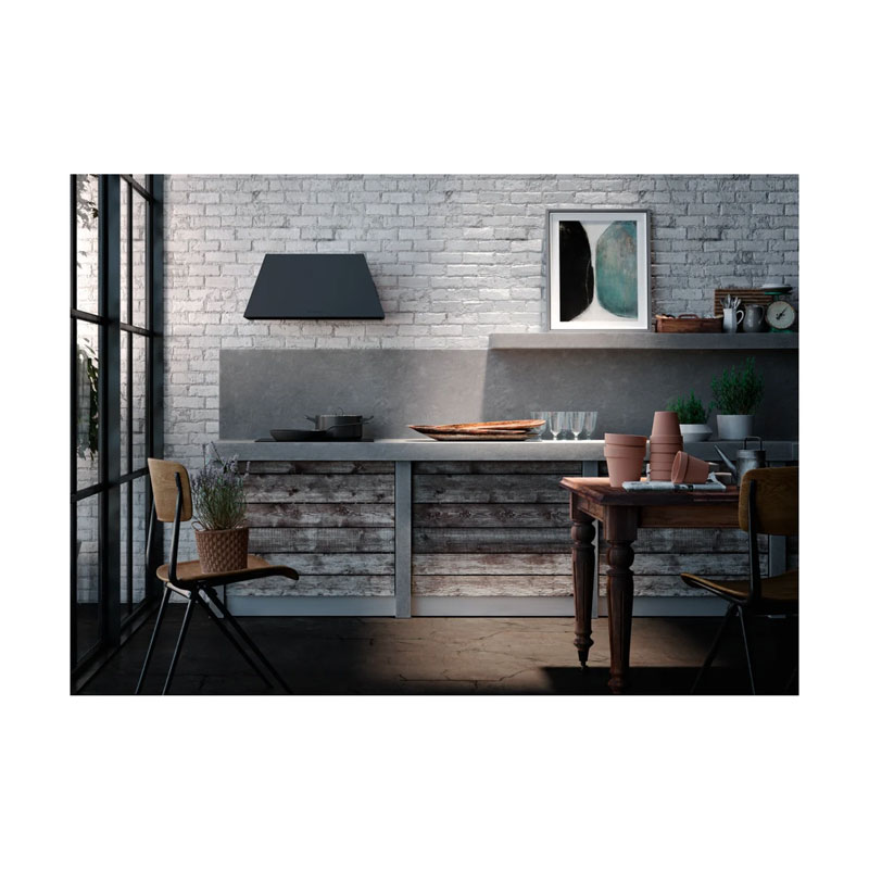 Η πίσω έξοδος αέρα επιτρέπει τη διοχέτευση των αναθυμιάσεων στο πίσω μέρος του απορροφητήρα, εξαλείφοντας την επέκταση της καμινάδας και εκμεταλλευόμενη τον παραπάνω χώρο.