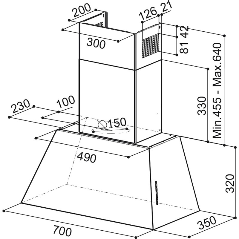 Το περιμετρικό πάνελ απαγωγής μειώνει τον αντιληπτό ήχο κατά 25% (που αντιστοιχεί σε μείωση κατά 3dB). Αυτή η μέθοδος αναρρόφησης εγγυάται βελτιστοποιημένη αποτελεσματικότητα με την εκμετάλλευση της αρχής του φαινομένου Venturi: ο αέρας επιταχύνεται καθώς περνά μέσα από τον περιορισμένο χώρο αναρρόφησης του πίνακα και μειώνεται αμέσως στο εσωτερικό του απορροφητήρα και στη συνέχεια αποβάλλεται εύκολα χωρίς να απαιτούνται ιδιαίτερα επίπεδα πίεσης