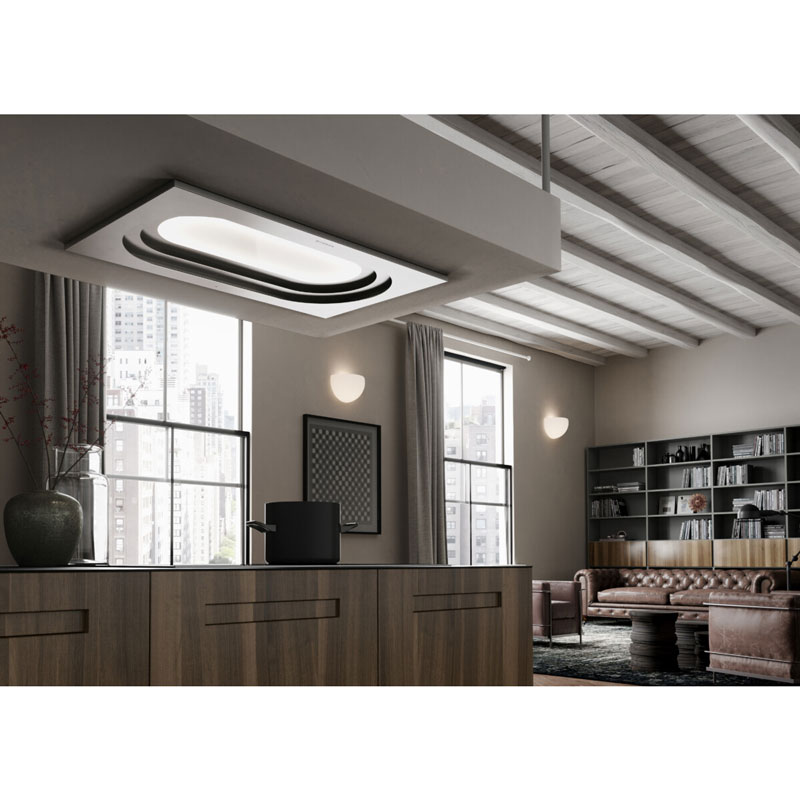 Με το εντυπωσιακό και εμβληματικό στυλ του, αυτός ο απορροφητήρας διατίθεται σε λευκό ματ ή ανοξείδωτο ατσάλι με πάνελ LED. Ιδανικό για ένα κομψό, μοντέρνο στυλ κουζίνας.