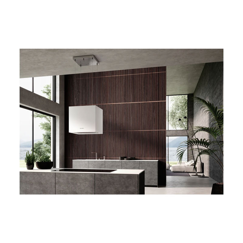 Το περιμετρικό πάνελ απαγωγής μειώνει τον αντιληπτό ήχο κατά 25% (που αντιστοιχεί σε μείωση κατά 3dB). Αυτή η μέθοδος αναρρόφησης εγγυάται βελτιστοποιημένη αποτελεσματικότητα με την εκμετάλλευση της αρχής του φαινομένου Venturi: ο αέρας επιταχύνεται καθώς περνά μέσα από τον περιορισμένο χώρο αναρρόφησης του πίνακα και μειώνεται αμέσως στο εσωτερικό του απορροφητήρα και στη συνέχεια αποβάλλεται εύκολα χωρίς να απαιτούνται ιδιαίτερα επίπεδα πίεσης