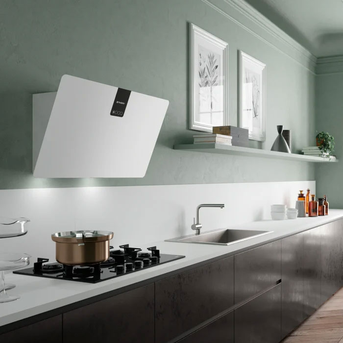 Τοποθετημένο στην κατηγορία A+ και κατασκευασμένο από Fenix, ένα επαναστατικό υλικό υψηλής τεχνολογίας που χρησιμοποιείται ευρέως στα έπιπλα, είναι ένας μοναδικός απορροφητήρας, όχι μόνο για την καθαριστική του ικανότητα αλλά και για τα λειτουργικά χαρακτηριστικά του.