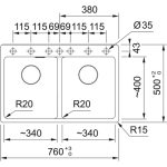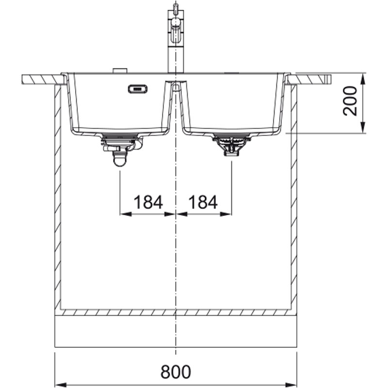 Γρανιτένιος νεροχύτης Centro MRG 620-34-34 FTL, με 2 γούρνες, χωρίς ποδιά, ένθετος, Slate Grey, με απλή βαλβίδα, 760x500ΜΜ, ελάχιστο μέγεθος ντουλαπιού 80cm