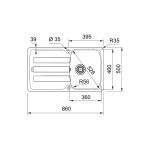 Γρανιτένιος νεροχύτης Antea AZG 611-86 860x500mm, αντιστρεφόμενος,polar white, με ανοξείδωτη βαλβίδα και υπερχείλιση