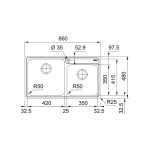 Ανοξείδωτος νεροχύτης Bell BCX 620-42-35 860x480mm, χωρίς ποδιά, περιλαμβάνει σιφόνια και βαλβίδες
