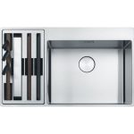 Ανοξείδωτος νεροχύτης Box Center BWX 220-54-27 860x510mm, ένθετη/flushmount τοποθέτηση, χωρίς ποδιά, 2 γούρνες, μικρή γούρνα αριστερά, ελάχιστο μέγεθος ντουλαπιού 90cm, με σιφόνια και βαλβίδες, στη συσκευασία περιλαβάνονται: σετ 3 μαχαιριών, ξύλο κοπής, αντιβακτηριδιακή επιφάνεια κοπής, σχάρα στήριξης, στραγγιστικό μπωλ και θήκη μαχαιριών