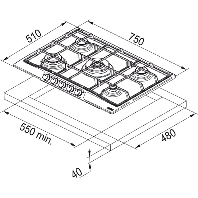 Εστία Αερίου COUNTRY FCH 755 4G TC C Oatmeal, 750x510MM, Ελάχιστο μέγεθος ντουλαπιού 80 cm, 5 ζώνες
