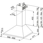 Επιτοίχια καμινάδα Joy FJO 924 XS, 90cm, χειρισμός με βυθιζόμενους διακόπτες, 3 βαθμίδες ισχύος, inox