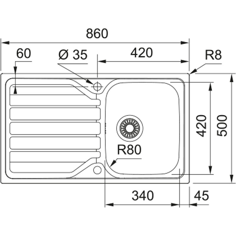 Ανοξείδωτος νεροχύτης Flash FLN 611-78/50 3 1/2' NWK LB REV NTH FRL, 1 γούρνα και ποδιά, περιλαμβάνει σιφόνια και βαλβίδες