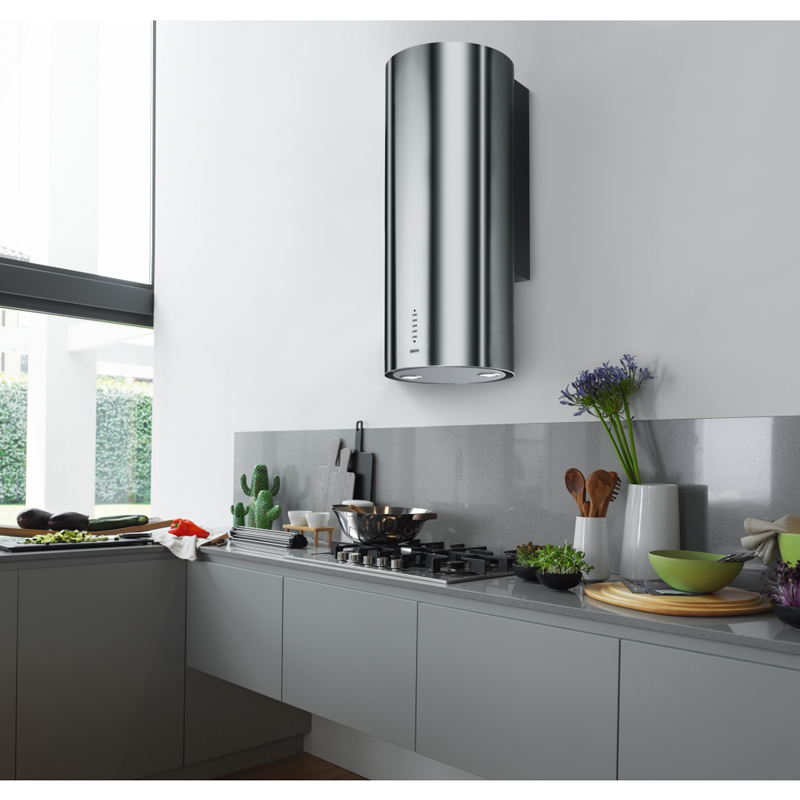 Διακοσμητικός κυλινδρικός απορροφητήρας για τοποθετήση σε τοίχο, χρώματος inox