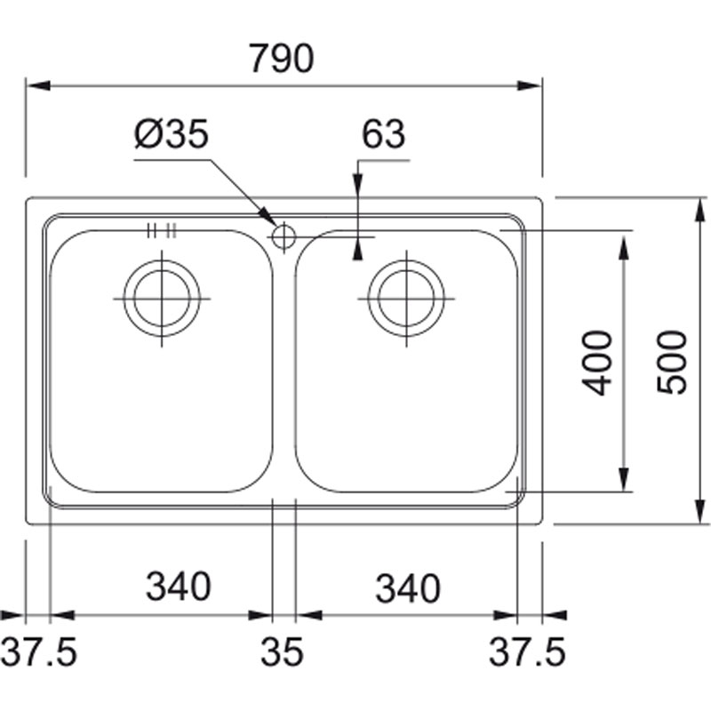Ανοξείδωτος νεροχύτης Logica Line LLX 620 790x500mm, σαγρέ, χωρίς ποδιά , η συσκευασία περιλαμβάνει σιφόνια και βαλβίδες