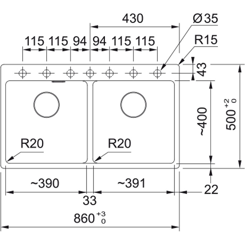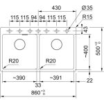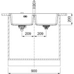 Γρανιτένιος νεροχύτης Centro MRG 620-39-39 FTL, με 2 γούρνες, χωρίς ποδιά, ένθετος, Onyx, με απλή βαλβίδα, 860x500ΜΜ, ελάχιστο μέγεθος ντουλαπιού 90cm