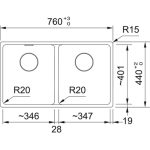 Γρανιτένιος νεροχύτης Maris Bowl MRG 620-35-35, με 2 γούρνες, χωρίς ποδιά, ένθετος, stone grey, με αυτόματη βαλβίδα, ελάχιστο μέγεθος ντουλαπιού 80cm