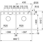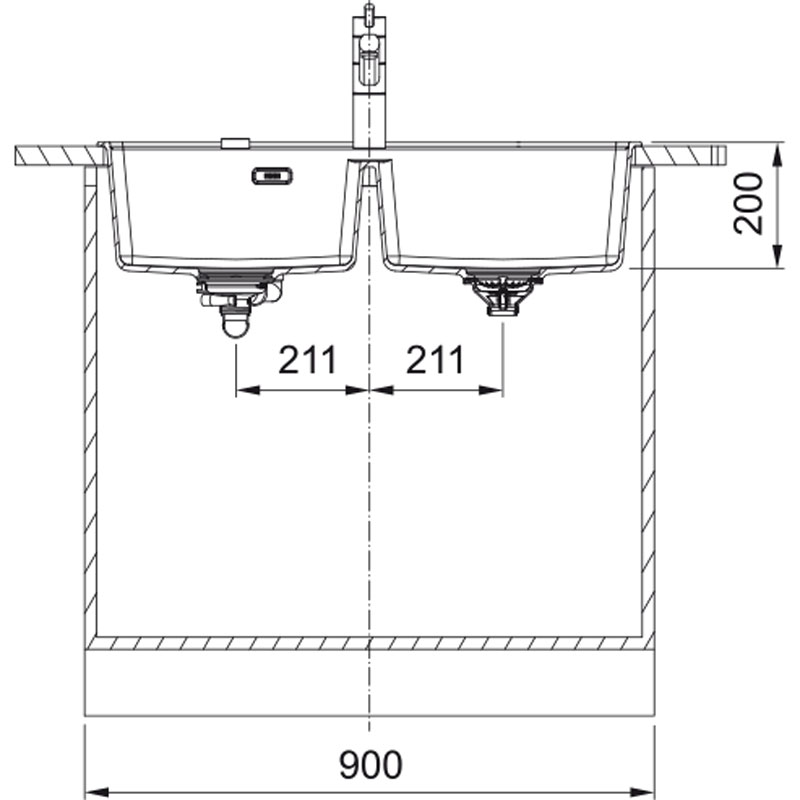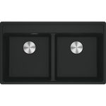 Γρανιτένιος νεροχύτης Maris Bowl MRG 620-40-40 TL, με 2 γούρνες, χωρίς ποδιά, ένθετος, matt black, με αυτόματη βαλβίδα, ελάχιστο μέγεθος ντουλαπιού 90cm