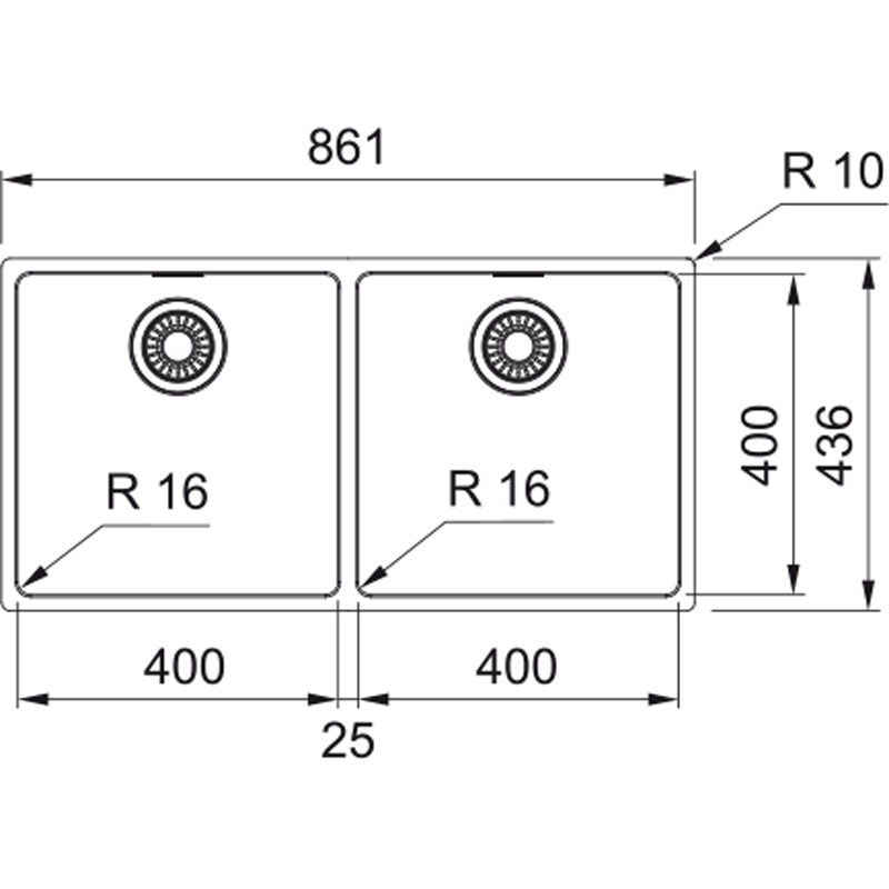 Ανοξείδωτος νεροχύτης Maris MRX 220-40-40 861x436mm, ένθετη/flushmount τοποθέτηση, χωρίς ποδιά, 2 γούρνες, ελάχιστο μέγεθος ντουλαπιού 90cm, με σιφόνια και βαλβίδες