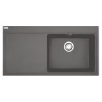 Γρανιτένιος νεροχύτης Mythos MTG 611 1000x515mm, αριστερή ποδιά, stone grey, με αυτόματη ανοξείδωτη βαλβίδα και υπερχείλιση