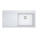 Γρανιτένιος νεροχύτης Mythos MTG 611, αριστερή ποδιά, polar white, με αυτόματη ανοξείδωτη βαλβίδα και υπερχείλιση
