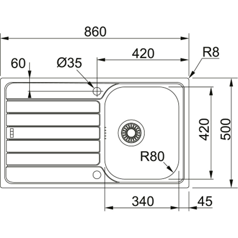 Ανοξείδωτος νεροχύτης Spark SKX 611 860x500mm, αντιστρεφόμενη ποδιά, περιλαμβάνει σιφόνια και βαλβίδες