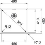 Ανοξείδωτος Νεροχύτης SQUARE BXX 210-45 490x450mm Inox Flushmount/Ένθετη/Υποκαθήμενη τοποθέτηση Σετ , βάση για ντουλάπι 50cm , 30 χρόνια εγγύηση